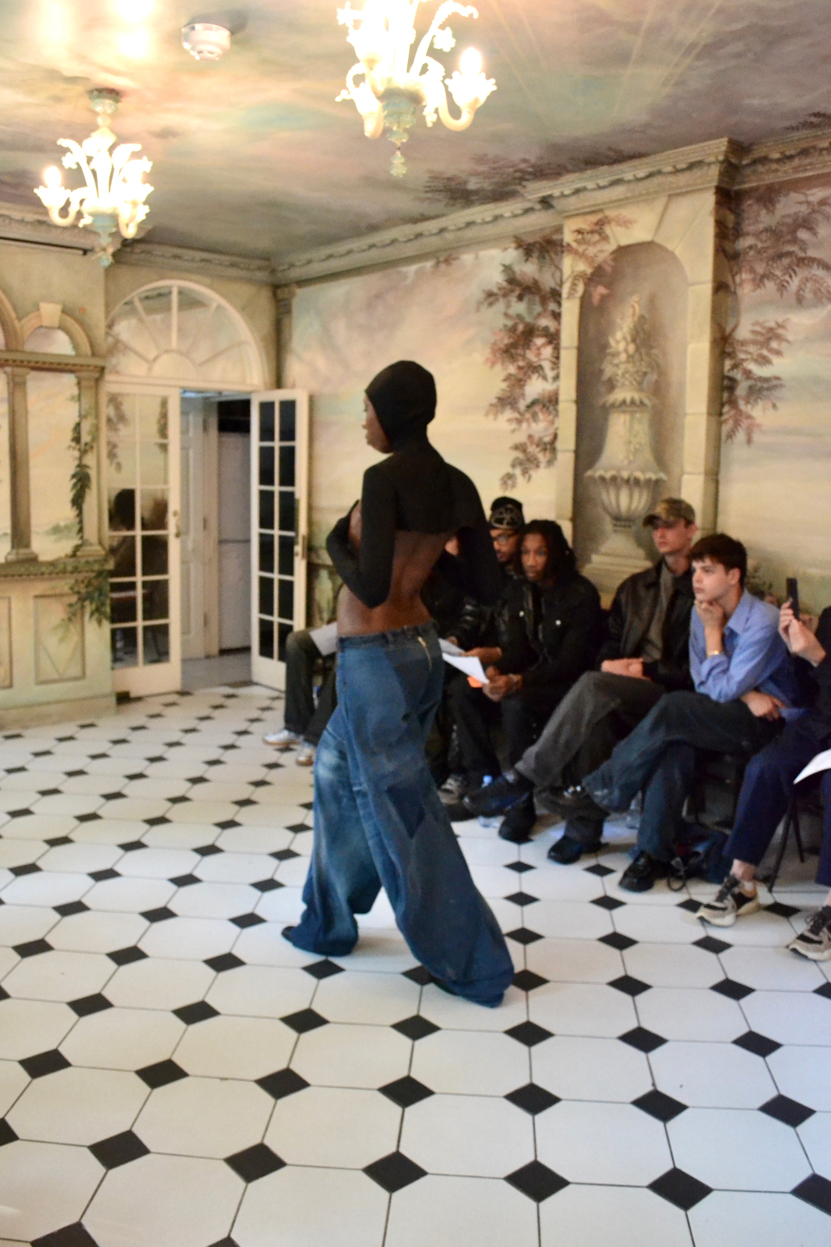 The Artois Magnus jeans were first debuted in London, Greenwich at the Fan Museum. This traditional salon style presentation was bathed in a sea of blue lapis as the cascading drapes of rich denim swayed in lulling the room into a divine mediation.